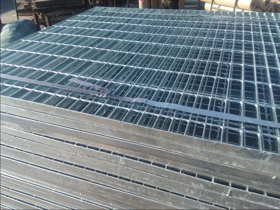 制作要求鋼格柵板應選用壓力電阻焊制作,通過壓力機將橫桿壓入負載扁鋼固定。與負載扁鋼同向的包邊板應與每根橫桿焊接。樓梯踏步板的端邊板應單面滿焊。在負載扁鋼的端頭,般情況下應運用與負載扁鋼同規范的扁鋼或型鋼進行包邊。樓梯踏步板如有前沿包邊護板,應貫穿整個踏步。